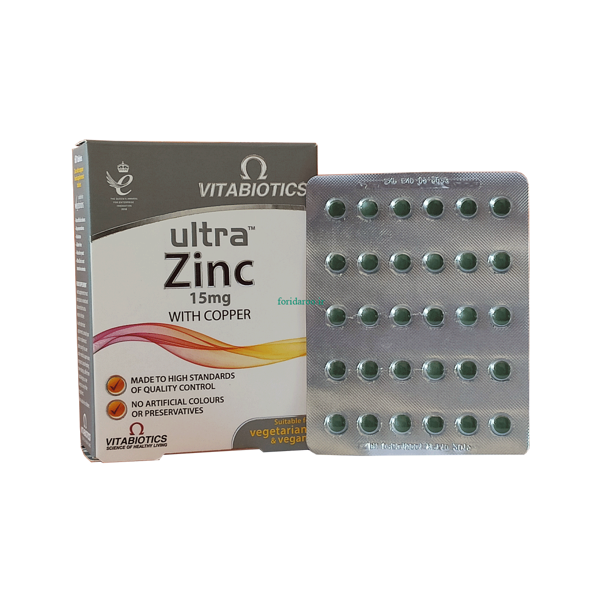 قرص اولترا زینک ۱۵ میلی گرم ویتابیوتیکس یک مکمل منحصر به فرد و موثر جهت تامین نیاز روزانه بدن به زینک است. هر قرص این فراورده حاوی ۱۵ میلی گرم زینک و مس بوده که به تقویت سیستم ایمنی کمک شایانی میکند. همچنین حفظ سلامت پوست، مو و ناخن از دیگر کاراییهای این محصول است. مکمل ویتابیوتیکس فاقد رنگهای مصنوعی، گلوتن، مواد نگهدارنده، لاکتوز، نمک و مخمر است. به همین دلیل افرادی که دارای رژیم غذایی گیاهخواری هستند نیز میتوانند این مکمل را مصرف کنند.