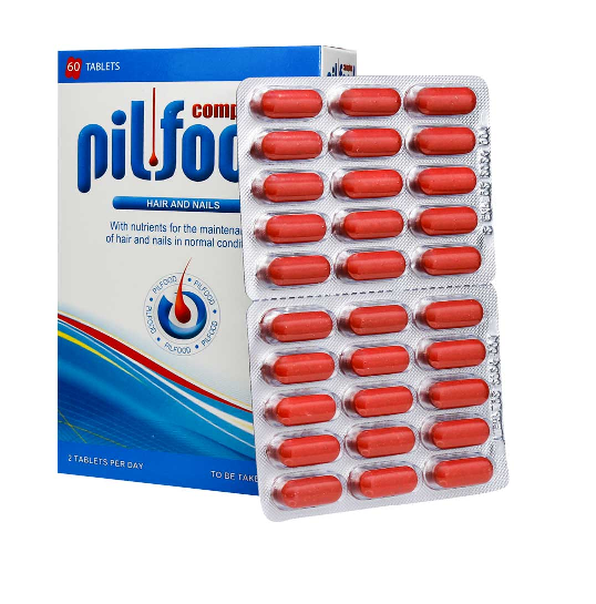 قرص پیلفود کمپلکس به تقویت و رشد مو و ناخن شما کمک میکند. این محصول حاوی انواع ویتامینها و مواد معدنی مورد نیاز برای رشد مو و ناخن است. ۲ بار در روز میتوانید از این محصول استفاده نمایید و پس از مدت زمانی کوتاه تاثیرات مثبت آن را در سلامتی خود مشاهده نمایید. داشتن موهایی نرم، محکم و لطیف و همچنین ناخنهایی محکم و زیبا آرزوی همه افراد به خصوص خانمها است. بر اثر کمبود برخی ویتامینها و مواد معدنی، بدن انسان با مشکلاتی مواجه میشود که منجر به ریزش موها و شکننده شدن ناخنها میشود. این محصول حاوی انواع ویتامینهای گروه B و املاح معدنی همچون آهن و روی بوده که در رشد مو و ناخن نقشی اساسی دارند. ۹۰ درصد از ساختار مو را کراتین تشکیل میدهد. قرص Pilfood Complex حاوی موادی است که به تولید کراتین نیز کمک میکنند.