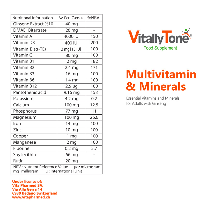 مولتی ویتامین و مینرال ویتالی تون حاوی انواع ویتامین و مواد معدنی مورد نیاز بدن بوده که هر یک در نگهداری روزانه کارآمد بسیاری از فرایندهای بدن نقش اساسی دارند و به سلامت عمومی بدن کمک موثری می‌کند.